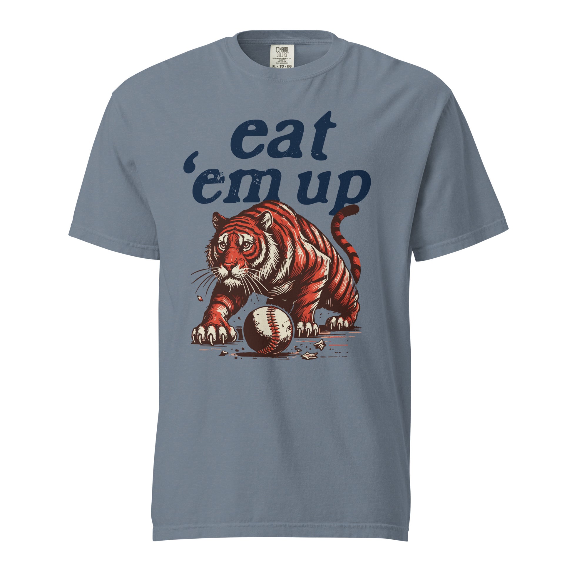If you know, you know. “Eat ‘em up” is one of those chants that lives rent-free in every Detroit kid’s head—and now it lives on your shirt, too. With a bold tiger front and center, this one’s made for the fans who remember the magic and want to pass it on. Eat 'em up, Tigers, eat 'em up.
